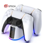 Le design moderne avec éclairage LED bleu s’intègre parfaitement à votre espace gaming. Compacte et élégante, cette base de recharge PS5 est l’accessoire idéal pour garder vos manettes toujours prêtes à jouer.